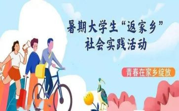 转眼期盼许久的为期两个月的社会实践就过去了。在暑假却让我从中领悟到了很多的东西,而这些东西将让我终生受用。社会实践加深了我与社会各阶层人的感情,拉近了我与社会的距离,也让自己在社会实践中开拓了视野,增长了才干,进一步明确了我们青年学生的成材之路与肩负的历史使命。社会才是学习和受的大课堂,在那片广阔的天地里,我们的人生价值得到了体现,为将来更加激烈的竞争打下了更为坚实的基础。我在实践中得到许多的感悟!